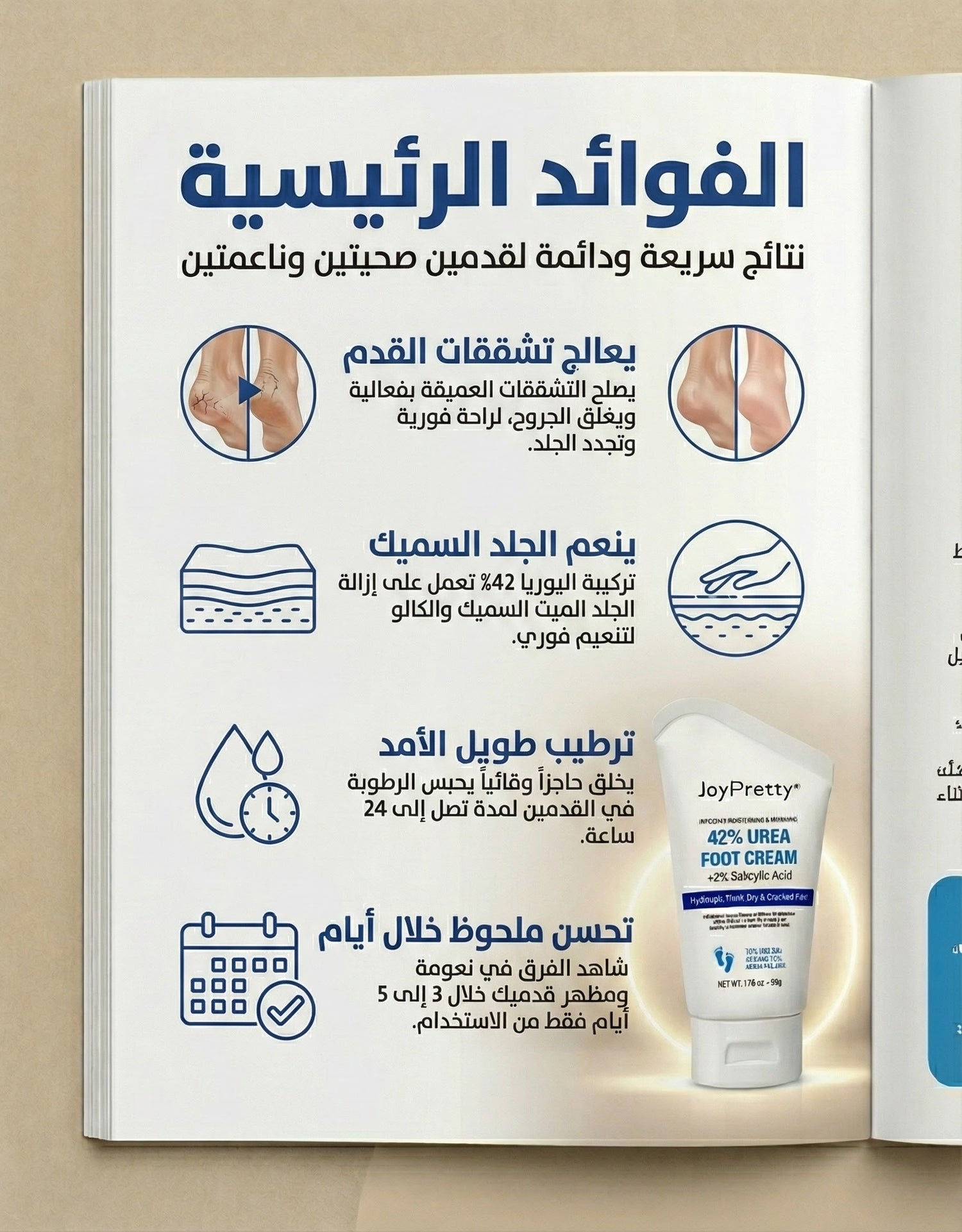 “كنت دايم أتحاشى الصندل بسبب التشققات 😔. من أول أسبوع استخدام حسّيت بفرق بالنعومة 💗. بعد فترة قصيرة صارت قدمي أنعم وارتحت نفسيًا مرة 🥰. حسّيت إني رجعت أهتم بنفسي من جديد 🌸.”